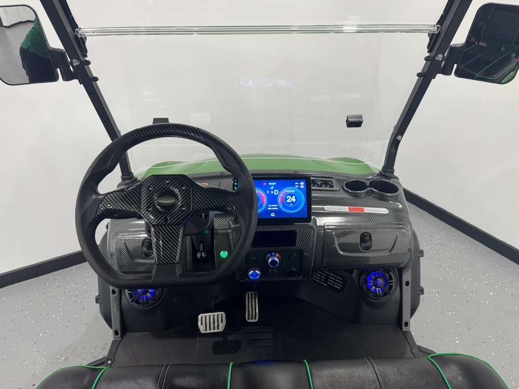 This premium golf cart comes fully equipped with Apple CarPlay, Bluetooth sound system, backup camera, rearview mirror, durable 14-inch tires, and the highlight—Start/Stop function with keyless entry, delivering modern convenience and advanced safety.